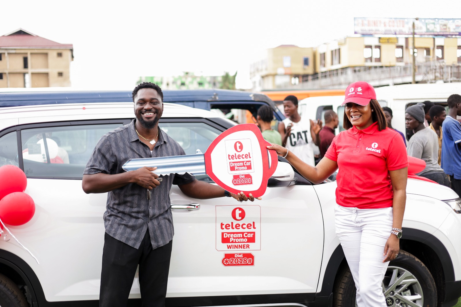 The Kaneshie Market in Accra erupted into cheers and excitement as Telecel Ghana presented a brand-new Hyundai Creta as grand prize to the 14th cycle winner of its SMS-based trivia competition, Dream Car promo.